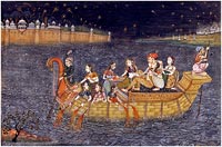 trag mit grösster Detailtreue aus. Das Kopieren von historischen Gemälden ist - wie in vielen östlichen Kulturen - auch Teil der rajasthanischen Maltradition in dem Bestreben das große Können eines Meisters zu erlangen. Daneben setzen die Maler auch eigene Ideen um, diese Gemälde sind mit dem Begriff "Komposition" gekennzeichnet.